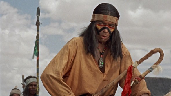Apaches, historically feared (with corpse-loads of proof) for their cruelty, had started to get somewhat of a warriors fair shake from movie makers in previous outings like Fort Apache and especially Broken Arrow, so by the time this came out Michael Pate (kind of an Aussie version of J.Carrol Naish when it came to playing various ethnicities) as ‘Vittorio’, and the always effective Rodolfo Acosta, as ‘Silva’, could play both ends of the dramatic field—nobility and nastiness.