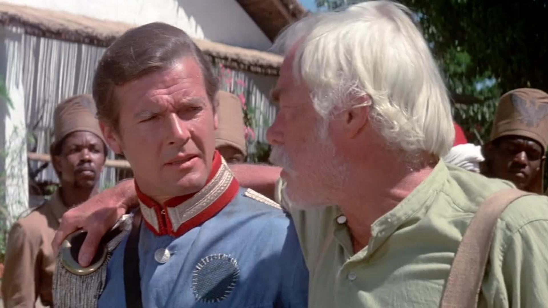 Maurice Jarre scores, but it’s a limping effort with no surging theme or excitement. The production manages that common 70s looking simultaneously expensive and cheap. Plenty of costumed extras, some pretty good effects, lots of costly props, attempts at flavor. Then—thump—the telephoto lenses and camera setups remind you it’s all a pose waiting for a cue. The real tsetse fly in the ointment is the sloppy, uninspired direction from Peter Hunt. That’s odd, as he was responsible for the smashing editing of the first three Bond movies, as well as directing the sixth, On Her Majesty’s Secret Service. After superbly cutting Connery and Shaw battling to the death in From Russia With Love, and pacing Goldfinger to 24 carat perfection, it seems like 100-proofed Marvin left Hunt more shaken than stirred.
