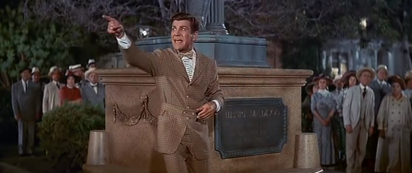 The only real fly in the buttermilk is one common to almost all Big Musicals—there’s just a little too much: dropping at least two numbers and twenty minutes would bump its easy three star status up to a secure four. Length worked with West Side Story and The Sound of Music, but wore out welcomes on many other songfests. Mercifully, this Meredith Wilson showcase doesn’t force-feed the audience one of those godawful dream-sequence/modern-dance numbers that hobble into the glories of Oklahoma, The King and I and Fiddler on the Roof, but 151 minutes stuffs more padding than even Harold Hills suitcase can hold.