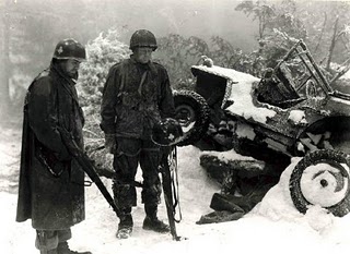 Note: During the Bulge, 19,000 Americans were killed, 47,500 wounded and 23,000 went missing or were captured. A bleak Christmas for many families, to say nothing of the hapless Belgian civilians and 100,000 German soldaten. Doug Fowley, he of the clacking choppers, actually lost his in an explosion on his carrier in the Pacific. I met the late Mr.Fowley when he guest-starred on Lassie in the 70s (my b.in-law was starring). What a great old timer, filled with stories from Golden Age Hollywood.