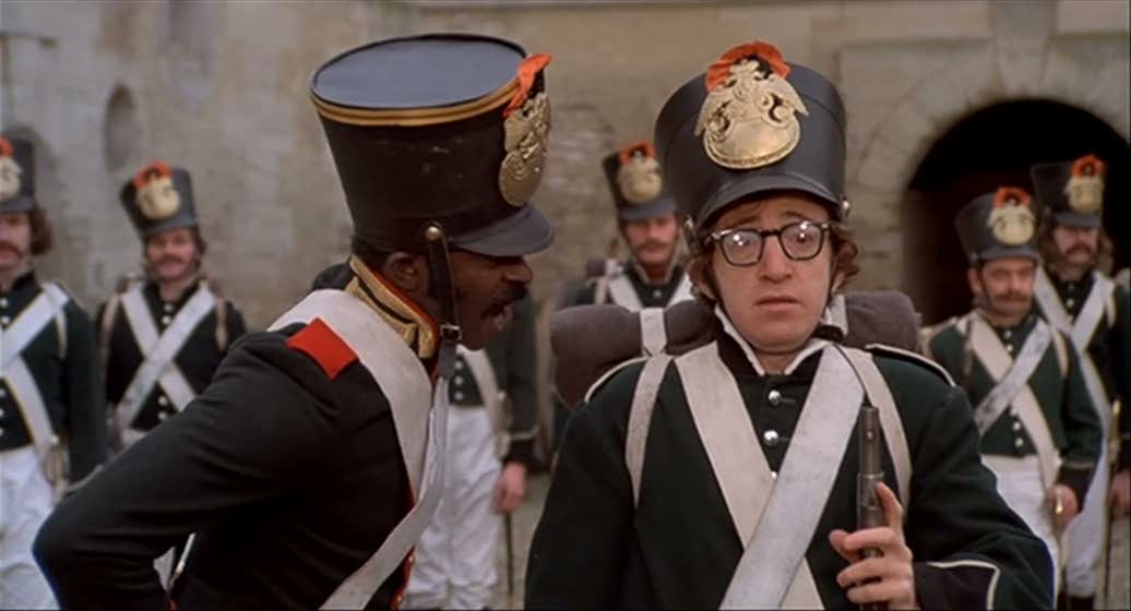 Czarist Russia, 1812. Napoleon is about to strike. Boris Grushenko is torn from his love, cousin Sonya, and sent to the front where, despite his cowardice, he becomes an inadvertent hero. Between the flood of great gags and pratfalls, Allen weaves playful swipes at ‘heavy’ Russian literary tradition—Dostoevsky, Tolstoy, Gurdjieff—and their pondering of Life, and adds homage to Ingmar Bergman for a chaser.