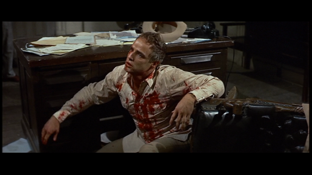 The biggest sap in town is the decent Sheriff, absorbing all the burg’s spite and punishment in the person of Citizen Brando. By this stage in his careers downhill canter, the customary mush in Marlon’s mouth had begun to congeal into a lumpy state, but he’s better here than in most of his output from the era. Speaking of lumps, the crescendo comes when Brando receives one of the bloodiest pulpings in movie memory. Subtext: he’s taking it on behalf of all of us. Thanks.