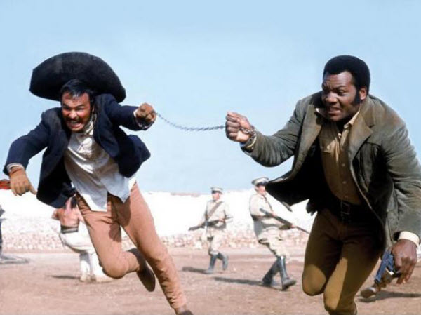 100 RIFLES is a dud 1969 western, set below the border around 20th-century turn, with a trio of good guys leading the Yaqui Indians against their Federale oppressors. The movie drew a blizzard of publicity, using star Raquel Welch’s ‘shower scene’ and some then-controversial love tussles with Jim Brown. Neither steamed-up event did anything to help the dramatic payoff, though it did help serve to recover a $3,920,000 budget with a gross of $10,000,000. The third hero is Burt Reynolds, with a big hat and a breezy attitude that carried him through this turkey, while poking fun at it in the trades. Burt & Raquel and Raquel & Jim did not get along: she managed that with many of the people she worked with. Then again, considering Brown’s rep with women, maybe she didn’t feel like being friendly enough to get roughed up.