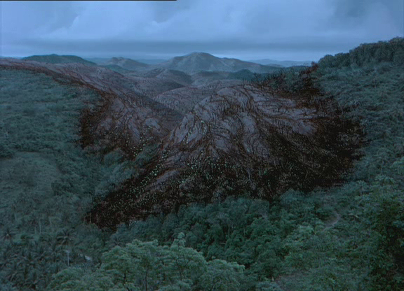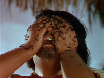 THE NAKED JUNGLE—–“You’re up against a monster twenty miles long and two miles wide…forty square miles of agonizing death! You can’t stop it!” The first two-thirds of this adventure is just mildly interesting talk, as humorless Brazilian plantation owner Charlton Heston and his mail-order bride Eleanor Parker snipe and sulk at each other. Then it gets neat, as an ocean of red ants—‘Marabunta‘—march on the hacienda. Finally, it’s skin-crawly and spectacular as Chuck & Co. battle with fire and flood against the ravenous little critters.