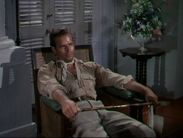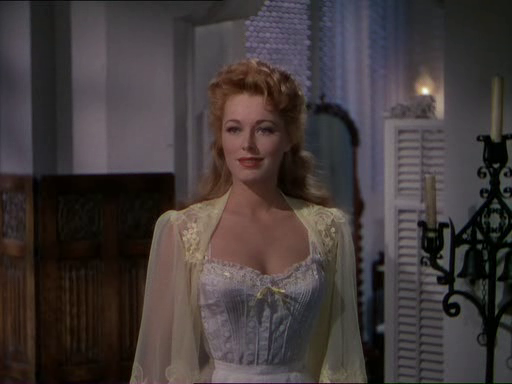 Ernest Laszlo’s color lensing is attractive, and the score from Danielle Amfitheatrof has some appropriate eeriness. Heston makes a stalwart enough hero, despite being stiff from all his scowling, while Parker’s hot red tresses and creamy skin compensate for her over-acting. They both get some pokey lines to batten each other with. From her: “If you knew anything about music, you’d know the best piano is one that’s been played.” (that’s known as a hint) From him: You’re very beautiful. Intelligent. Accomplished. There must be something wrong with you.”