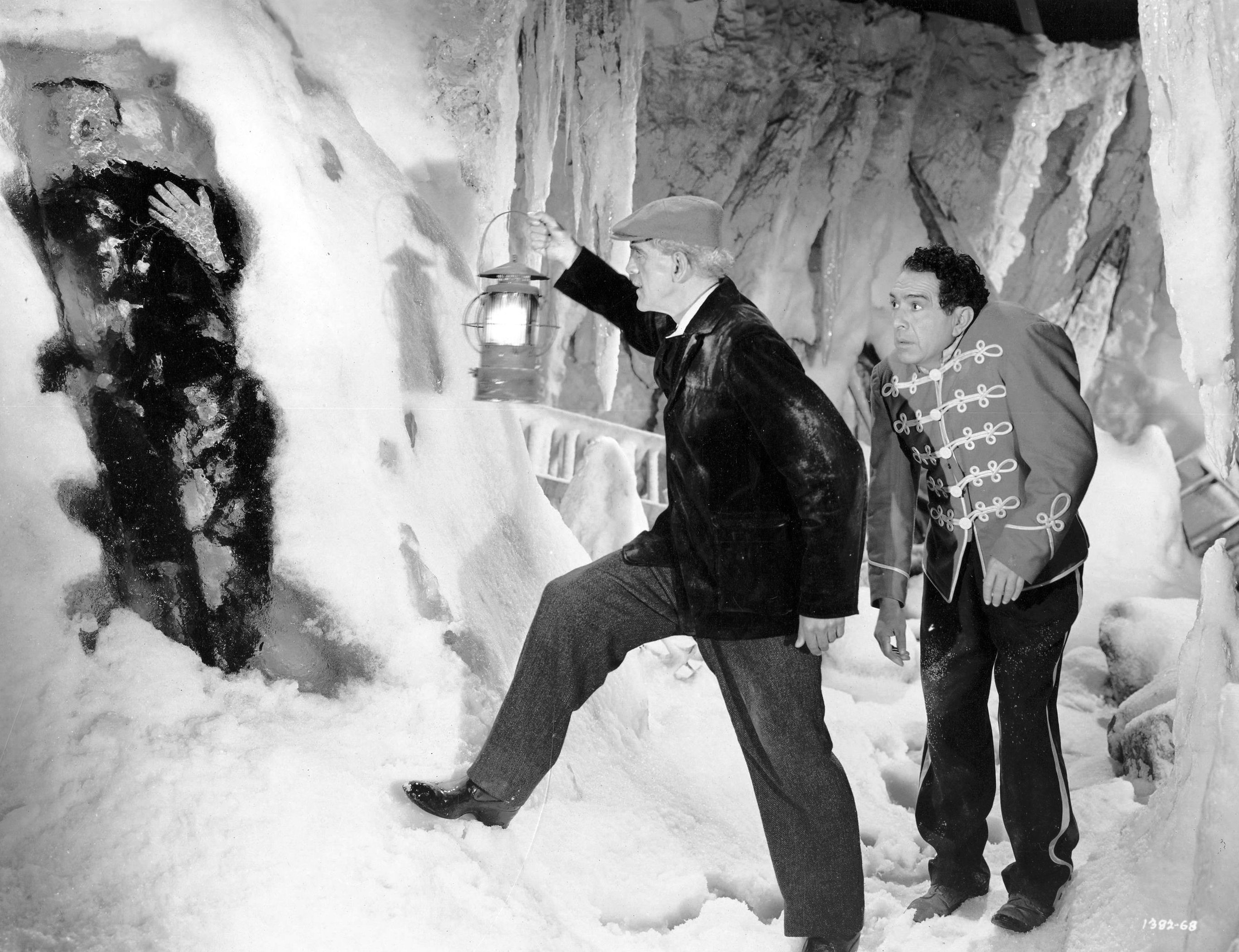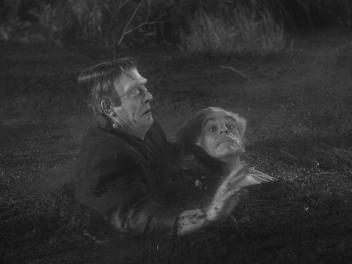 Nutjob ‘Dr. Gustave Niemann’ (Boris Karloff) and his lickspittle hunchback pal (J. Carrol Naish) escape from prison. Within a few minutes, they’re joining a travelling freak show that’s exhibiting the staked-bod of Count Dracula (John Carradine, probably as suave as he ever looked), and digging in the ruins of the castle previously blown up in Frankenstein Meets The Wolfman. That pair get revived, which the local population of village babblers can hardly condone, and a trail of bodies strews the foggy landscape.