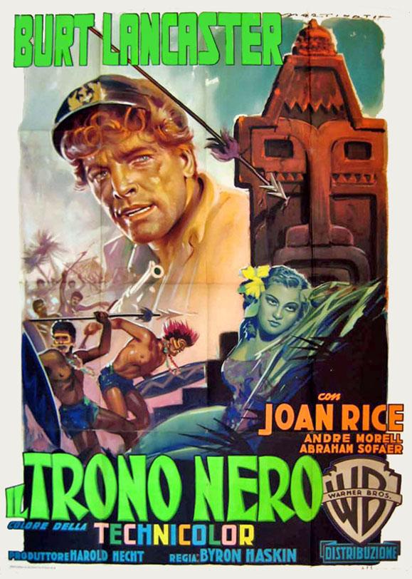 Burt Lancaster, 41 and still in his athletic prime makes a perfect good-natured freebooter, trying to build a copra business and convince the Yapese (a Polynesian society with a seven-tiered caste) to revamp their monetary system. His schemes have him contend with pirates (like the notorious ‘Bully Hayes’), the skeptical natives, their to-him-primitive customs, romance (natch).