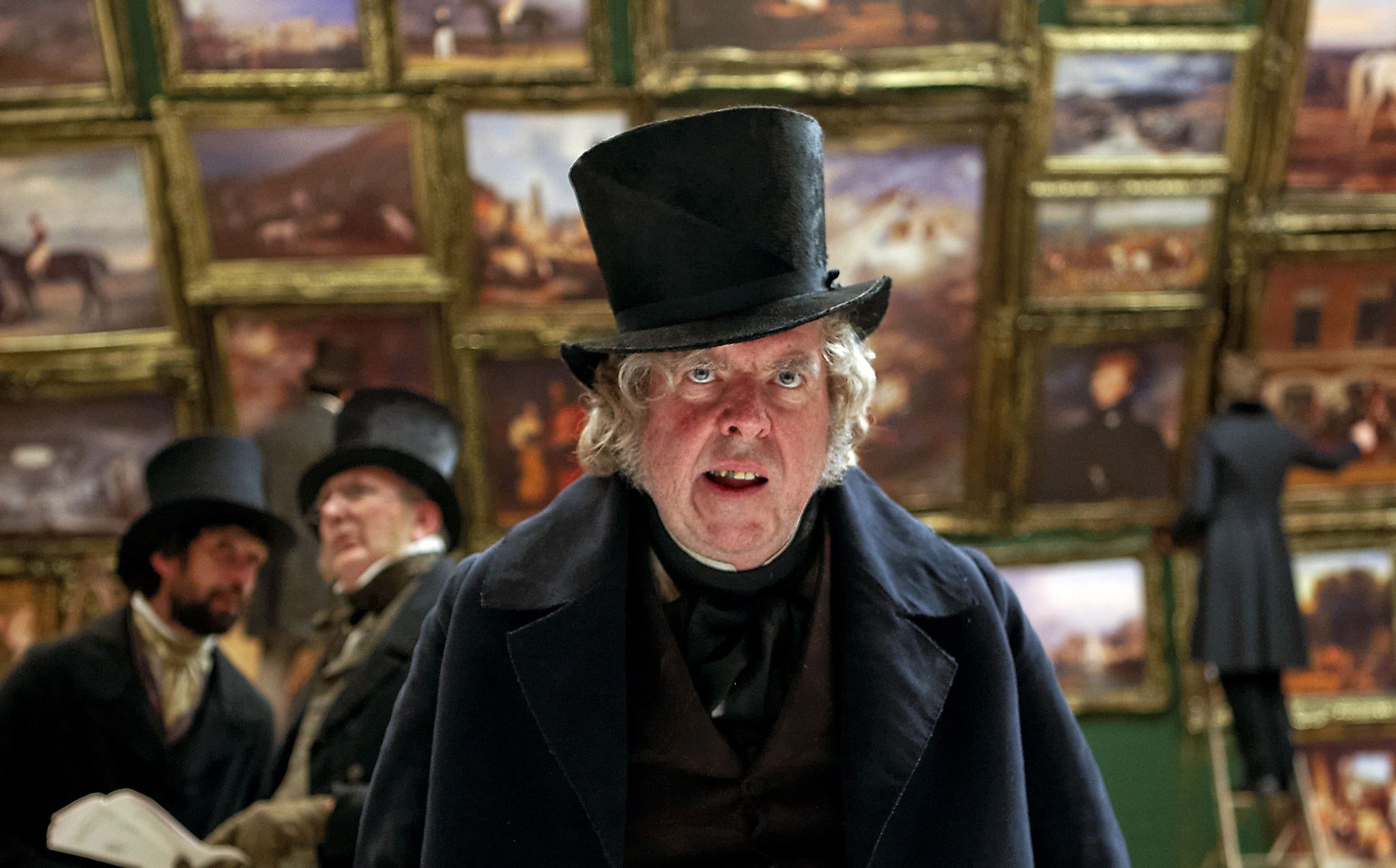 Leigh & his rumpled-to-perfection star cover the last 25 years in Turner’s life: he died in 1851 at the age of 71. The ‘painter of light’ and his arresting, ethereal watercolor landscapes delighted and confounded highbrow and hoi polloi alike during his feisty life, and opened the canvas door for Impressionism.