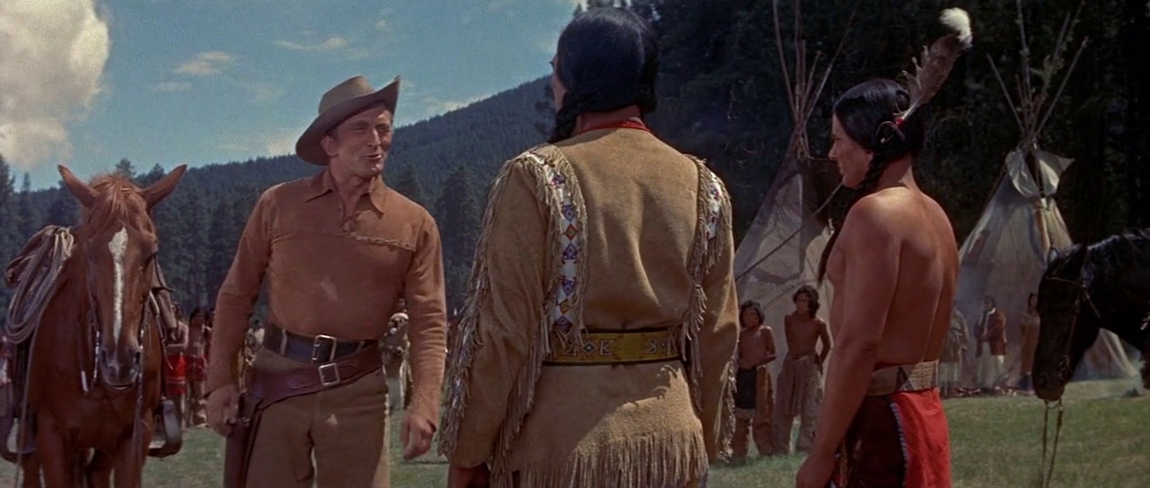 THE INDIAN FIGHTER is a generally interesting 1955 pass at making a western with some depth, sympathetic to Native Americans (not that they get to play themselves) and with a novelistic-tinged approach in the writing by Ben Hecht that voices early environmental concerns, deals a bit with racism, throws in some daring-for-the-day sex, and thankfully has a battle at the tail end.