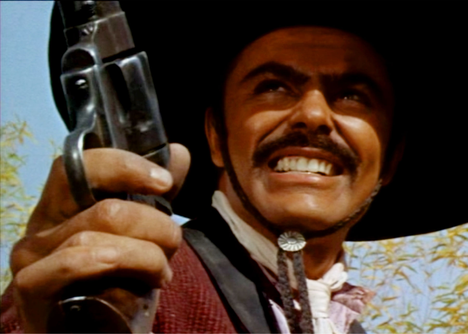 Brando dicked with Furie, as was his habit with almost every director he crossed egos with, and according to his friend and co-star John Saxon was too distracted by personal issues with his father to pay attention to a project he didn’t care about in the first place. Saxon gleefully tears into it like industrial Tabasco as a mean-streaked hombre who steals Brando’s prized horse and gives him a bad time in general from one end of the foolish story to the other, including slamming Marlon’s hand onto a scorpion during an arm-wrestle.
