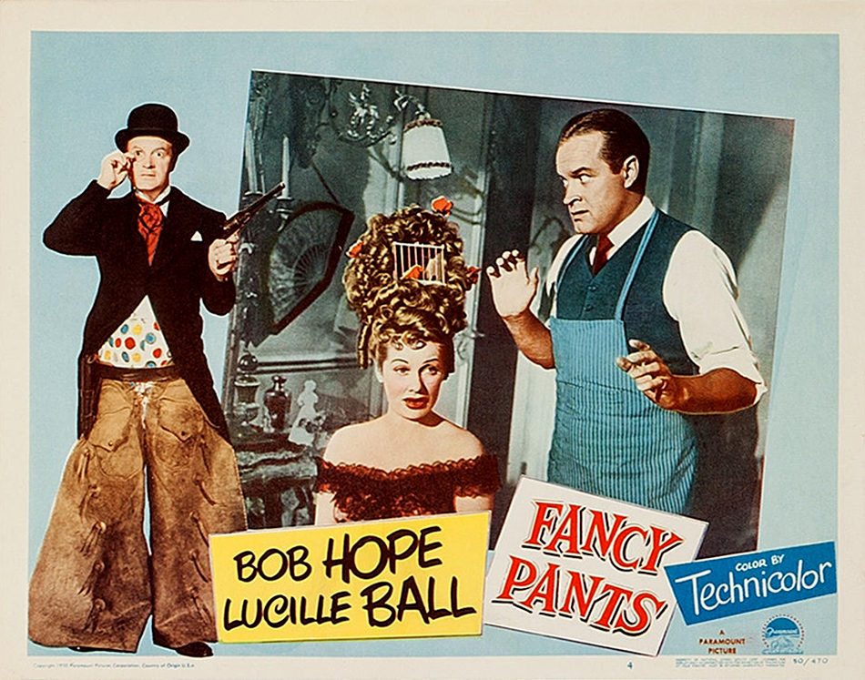 FANCY PANTS—now that most of the generation that aged along with them are gone, and the current demographic-dominating Millennials confuse them with 19th-century Presidents, it can be a nice goose for us who, as kids, enjoyed Bob Hope and Lucille Ball and then grew disaffected with them as they got old (how dare they) and phoned it in, to recall how good they were in their prime. This popular 1950 comedy has a goodly number of laughable scenes (in an old-fashioned way) as it does a rework of Ruggles Of Red Gap to suit Hope’s persona as hapless goof, and Ball’s as brassy wisegirl.