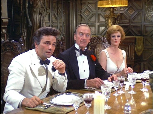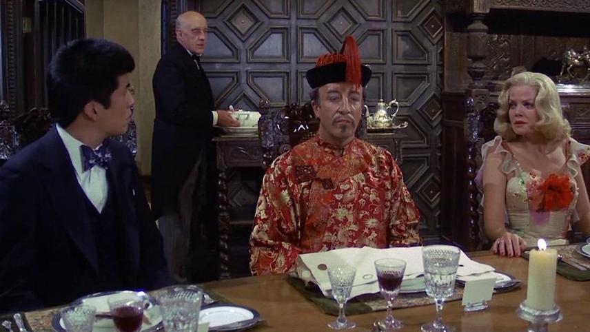 Fun comes from Peter Sellers, a hoot as ‘Inspector Sidney Wang’, Peter Falk as ‘Sam Diamond’, Eileen Brennan (Diamond’s ‘dame/toots/skirt’), and ‘Dick & Dora Charleston’, put over with effortless class by David Niven and Maggie Smith. Those five and their shticks get the best gags, Sellers non-p.c. topping them all: “Voice come from cow on wall.“