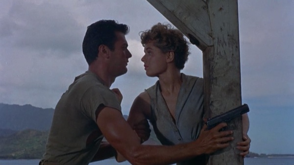 BEACHHEAD —-speaking of hottie French colonial planter’s daughters threatened by the Japanese, here it’s up to Tony Curtis and Frank Lovejoy to argue over who gets Mary Murphy after they discover where the mine-fields are laid on Bougainville. Deep breath. Nice color location lensing on the Hawaiian island of Kauai is the main ingredient at work in this silly 1954 matinée, directed by Stuart Heisler.