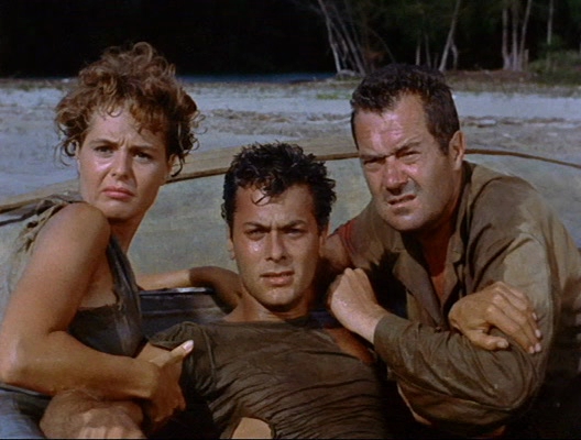 Small patrol, jungle sneaking, bitter rivalry, climaxed by one of the most astoundingly dumb stunts in pretend-hero annals. Tony throws a grenade at a slick of oil, which ignites and blows up a Japanese destroyer. Yes, scouts, an entire ship with one grenade! Inexpensively made for $450,000, the goof-off paid back $4,000,000, 83rd b.o. position that year, and gave Curtis, 28, on view in four pictures that year, another leg up on his rise to the big-time.