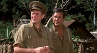 1942. British troops who escaped the debacle at Singapore share an island in the New Hebrides with a Japanese garrison, which includes an air base. They occasionally mix it up with skirmishes but mostly keep to their own sides of the island. When the Japanese radio outposts threaten to detect an approaching American convoy, the brass send in reluctant ‘Lt. Sam Lawson’ (Robertson, 46), a naval officer who speaks Japanese. Working under foolhardy ‘Capt. Hornsby’ (Denholm Elliott), who is detested by his men, Lawson and a patrol move into the thick jungle to knock out the station and try to get back alive. Among the team the one with the most sense—and one of the worst attitudes—is Cockney cynic ‘Tosh Hearns’ (Michael Caine, 36), the medic.