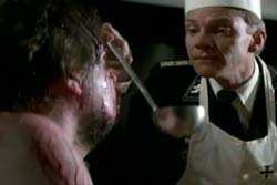In pursuit is a wild-eyed psychopathic Nazi loon, laying waste to everyone in his path. He’s played by Malcolm McDowell, upping his rampages from A Clockwork Orange; raping Kay Lenz, chopping off Michel Lonsdale’s fingers, burning Christopher Lee alive, and at the end, in a sick false-finale, shooting Anthony Quinn, James Mason and Patricia Neal point-blank in the face. Plot holes are deep enough to drain the Mediterranean, other cast members barely register life signs.