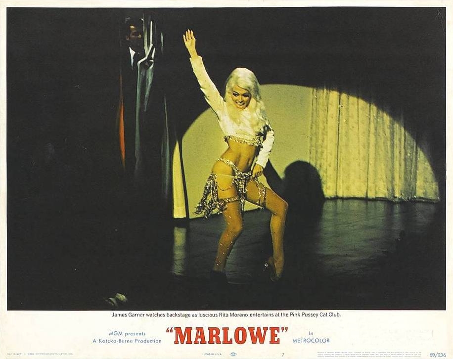 Based off Chandler’s fifth Marlowe novel, 1949’s “The Little Sister”, the script was written by veteran Stirling Silliphant (In The Heat Of The Night). The story isn’t especially involving, but the dialogue is decent. As directed by Paul Bogart, who mostly did work on TV, it looks like slightly upscale television, with obvious sets and some glaring rear projection footage during driving scenes. The music score from Peter Matz is a drawback, pushing broadly into “GET IT!?” territory during some of jokier sequences.