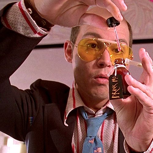 FEAR AND LOATHING IN LAS VEGAS should come with a suggestion tag: “Drop Acid. Let it come on. Then watch.” If Hunter F. Thompson’s anarchic 204-page reportage rant from 1971 dared you to decipher it between guffaws, then Terry Gilliam’s eyeball & taste assault movie adaptation from 1998 dares you to watch until minute 118 clocks out, provided cringes from excess haven’t already seen you abandon spaceship. The thing is that, those of us…let’s say–versed?–in the twists and turns of hallucinogenic highways know as gospel from purple experience: they can be either Great or the proverbial “bad”. Or both at once. Hydrate, Martian!