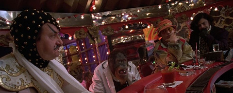 Depp, idolizing Thompson, spent months with him absorbing the wild Hunter essence, and del Toro went whole-hog (whorfing on 45 pounds) to pull every stop he could as the dangerous Gonzo. Gilliam then filled up the background with happily enlisted support troops. Some were already established as offbeat, like Gary Busey (going full-Gary), Christina Ricci and Ellen Barkin; others were promising newbies Christopher Meloni (having wispy fun as a hotel desk clerk with power), Tobey McGuire and Cameron Diaz; still more just there for the hell of it are Mark Harmon, Lyle Lovett, Harry Dean Stanton, Laraine Newman and Penn Jillette.