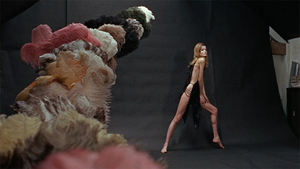 Fine, knock yourself out. We hate to agree with the dragon Pauline Kael on anything, but her review nailed this one to a tee, or, more to the point, did a fabbitchy job roasting the somersaults too many felt cocktail-bound to perform in order hopefully lap foam from the wave this movie was part of. The sex & nudity content pushed mainstream boundaries (Western Civilization is still here, albeit tottering). Retro cool comes from a gander at Jeff Beck and Jimmy Page, part of The Yardbirds, in the neat-yet-absurd concert sequence: their number is a roister off “Train Kept a’ Rollin”, yet the crowd sits there like they’re drenched in Novocaine. The whole thing with the twit hopefuls (Jane Birkin and Gillian Hills), romping with Thomas in & on those purple sheets of paper is simply stupefying; uncomfortable fakeness about as sexy as assault & battery.