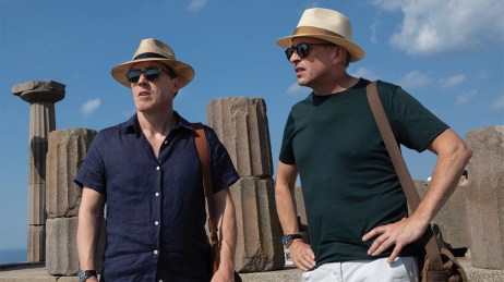 THE TRIP TO GREECE, the 2020 fade out, has no reliable figures reported yet: that’s because COVID-19 prevented a theatrical release. Those travel-starved fans who caught it on the tube found 103 minutes of light to let into an otherwise gloomy year. Join them on a sweep through Stagira, Athens, Hydra, Delphi, and Ithaca.