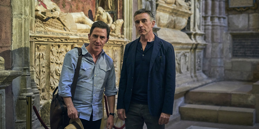 THE TRIP from 2011 and its three equally delightful sequels were superbly crafted together stand-alone’s from a BBC series that began the year earlier and apparently concluded in 2020 (let’s hope not!). Each was comprised from respective seasons of six half-hour episodes, re-edited into feature form. The basics are the same in each installment. Steve Coogan and Rob Brydon play satirical versions of themselves, doing week-long runs about assorted landscapes, reviewing restaurants. They comically spar with each other, talk about their personal lives, make comments on cultural icons, basically just “engage”. The first, in which they tool around England—Cumbria, Yorkshire and Lancashire—runs 112 minutes, and while box office figures are slippery for this quartet, it appears as though the inarguable jaunt pulled in around $3,945,000.
