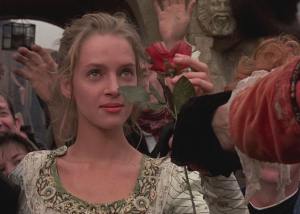 High marks go to casting renowned stage actor Neville, 63, who’s marvelous as the literally lofty hero. With a sparkle in his eyes, he unleashes delightful diction, poise, panache, presence, and flair. Amusing cameos come from Robin Williams (the randy ‘King of the Moon’) and Oliver Reed (‘Vulcan’, hearty, literally fuming). It’s also graced with one of the first appearances of Uma Thurman, 18.