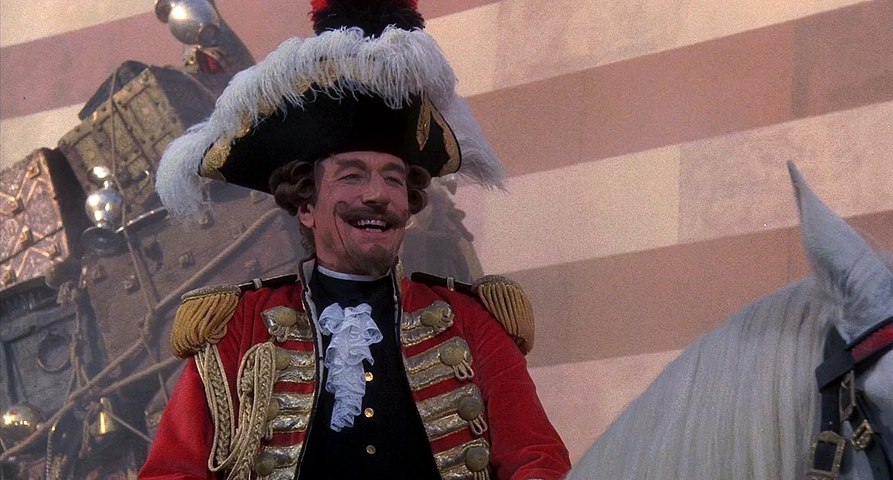 Warts and all, still an eyeful; much of it is truly inspired, and the great John Neville is splendid. With the hard-charging efforts of Jonathan Pryce, Eric Idle, Charles McKeown, Winston Dennis, Jack Purvis, Valentina Cortese (‘Ariadne, Queen of the Moon’), Peter Jeffrey (good fun as ‘the Grand Turk’) and Alison Steadman. Sting appears for about 30 seconds.