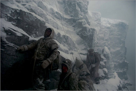 NORTH FACE scales a harrowing route to the topmost perch in the adventure sub-genre of mountain-climbing thrillers. Its death-defying (and inviting) historical protagonists keep company with a select few whose skill and daring battle lofty, impervious Nature and down-to-earth common sense. Directed by Philipp Stolzl, this aced 2008 teamwork comes from Germany; it didn’t rappel to the U.S. until 2010.