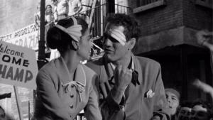 James Dean could have convinced as anti-social (because he was) but it’s harder to picture him as a fighter. Maybe they figured if Montgomery Clift could be cast as a boxer in From Here To Eternity, that Dean could pull it off. That said, Clift was a better actor than Dean. Newman outlasted and outdid them both. The Graziano saga arrived in a year flush with pugilism pictures—Humphrey Bogart’s last sally a disillusioned sportswriter in The Harder They Fall, Tony Curtis throwing jabs in The Square Jungle, and Audie Murphy doffing spurs and donning gloves for World In My Corner.