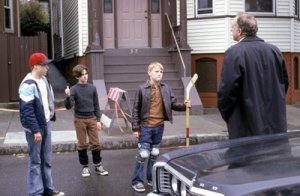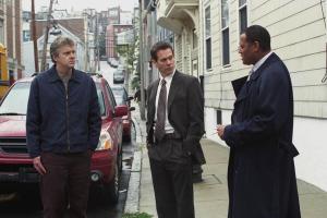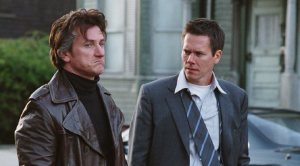 Boston, the mid 70s. Three boys—‘Jimmy Markum’ ,’Sean Devine’ and ‘Dave Boyle’—are playing street hockey, when two grown men brazenly kidnap Dave, who they abuse for days before he manages to escape. Fast-forward a quarter century. Jimmy (Penn), an ex-con, owns a neighborhood grocery, is married with two daughters. Sean (Kevin Bacon), is a police detective, estranged from his wife. Dave (Robbins) is also married with a young son of his own. When Jimmy’s older girl is murdered, Sean gets the case and begins to sift through leads and motives. Not fast enough for ripped-apart Jimmy, who uses his street connections to pursue matters on his own. Dave, meanwhile, has alibis and attitudes that don’t square.
