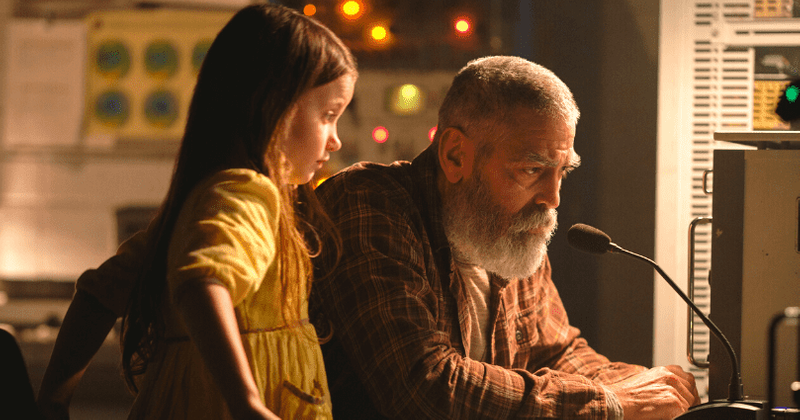 The Arctic, 2049. Isolated in his research station after others have been evacuated, scientist ‘Augustine’ (Clooney) tries to make contact with a colonizing mission returning from one of Jupiter’s moons, found able to support human life. The crew (Felicity Jones, David Oyeloyo, Kyle Chandler, Demian Bicher and Tiffany Boone) know there’s some reason contact with Earth has ceased, but they don’t know why. Augustine does. Already hampered by health problems, he makes a desperate trek to a location better suited for contact, a last-gasp attempt to warn the astronauts away from what’s transpired in their absence. He’s joined by a little girl (Caoillin Springall), who was accidentally left behind during the evac. While the pair face the Polar elements, the spacecraft crew contend with damage from asteroids.