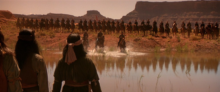 Unfortunately the stilted dialogue given to Studi and other Native Americans is just more trite rehashing of “Noble Injun-speak” heard in countless earlier, less-studiously “serious”, more readily entertaining movies. Patric and Damon (22, in one of his first films) would later show they could handle the genre (Patric in The Alamo, Damon in True Grit), but here, they’re just the wrong guys in the wrong movie. Patric, other than displaying some pretty impressive horsemanship, goes the Brando-lite murmur route, complete with iffy accent: he’s about as energetic as petrified wood. Damon is mostly a blank, looking more geared for a frat party than a frontier patrol.