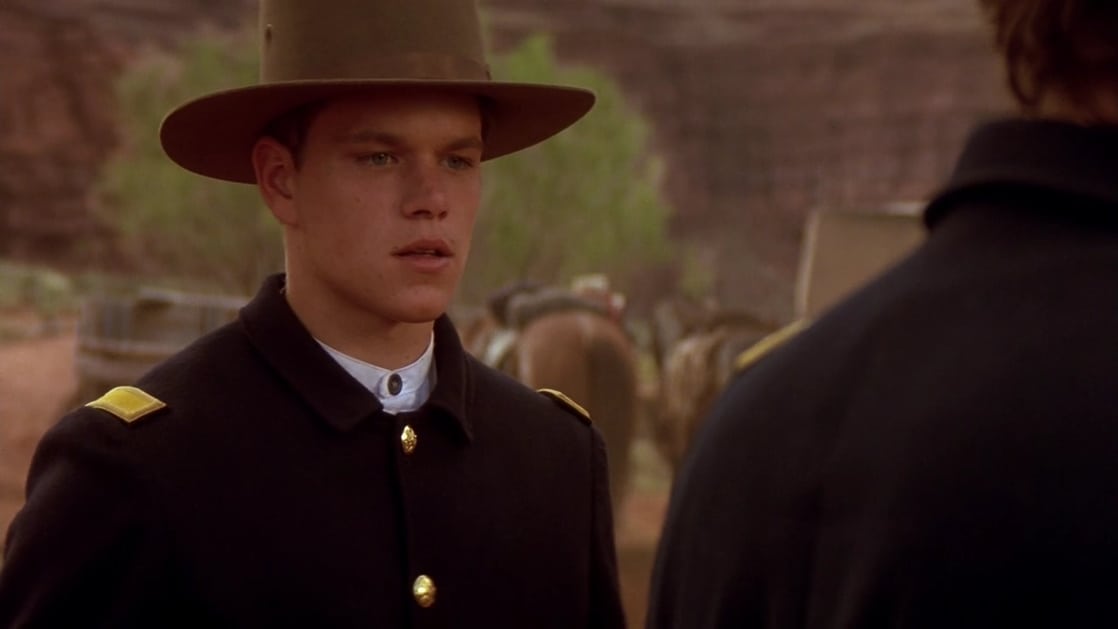 The Arizona Territory in the late 1880s. Decades of warfare look to have ended with the Apaches consigned to a reservation. U.S. Army General George Crook (Gene Hackman) hopes this enforced idleness will bring peace, but warrior leader Geronimo (Wes Studi) escapes and hostilities resume. Tasked with bringing him back are sympathetic Lt. Charles Gatewood (Jason Patric), veteran scout Al Sieber (Robert Duvall) and idealistic young officer Britton Davis (Matt Damon). Easier said than done.