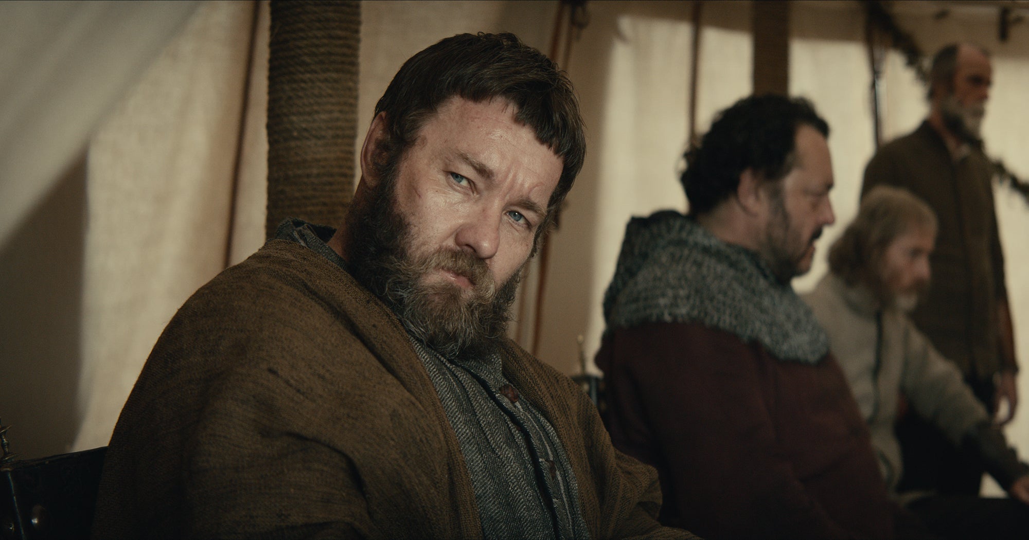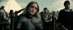 Henry was 6’3″, and 27 when he assumed the throne; Chalamet (who’s American, perish ye thotts) is 5’10” and 23, but looks like he’s 15 and appears to weigh maybe twice that much. Quibbles to the catbox, as it’s a good performance—plus his middle name is Hal, so nock that in your longbow and “loose!” The entire cast is in rich medieval form, with extra praise due Edgerton’s war-weary but noble and heroic Falstaff, Sean Harris’ sage (or is it?) counsel as Sir William Gascoigne, and Robert Pattinson’s flamboyant sneering as Louis the Dauphin. The script bristles with their exchanges, and the 140 minutes move forward with dispatch.