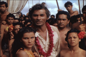 Daves staging does well by the visuals, Jourdan is appealing, Paget winsome, Chandler in the intense-but-fair mode that he’d carry into a decade of enjoyable B-pictures. Daniele Amfitheatrof did the tailored-to-exotica score, with chorale arrangements overseen by Ken Darby. Unlike the amusingly frenzied booga-booga nonsense designed by Busby Berkeley for the 1932 movie, this time the native dance choreography was handled by Iolani Lauhini, so its lyrical, ritual, invitational swaying gets somewhat closer to the real deal, even if the standards of the era still tamped down the earthier hulas—and poor Chandler is about as hip-movement hep as a sea turtle. ‘The Chief’ is played by Hawaiian singer Prince Lei Lani (real name Edwin Kaumualiiokamokuokalani Rose), a fixture on the island music scene long before Don Ho surfed in. 100 minutes.