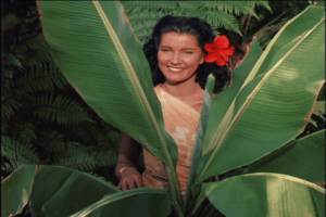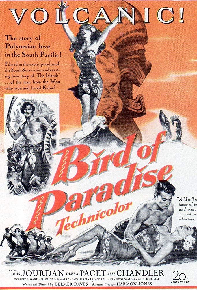 Directed & written by Delmer Daves, the 1951 adventure/melodrama was 66th at the boxoffice that year, with a comfortable gross of $4,700,000. Daves was fresh off directing the hit western Broken Arrow, and brought two of its stars along: Chandler (Oscar-nominated for that one) and Paget had essentially the same duty as before, switching ethnicity and region, Native American in the Southwest to Polynesian in the South Pacific. Eschewing studio backdrops, everyone went to Hawaii for immersive location filming, with Winton Hoch’s Technicolor cinematography providing mood-enhancing views of the Big Island scenery and pulse-enticing captures of 18-year-old ‘native maiden’ Debra Paget. *
