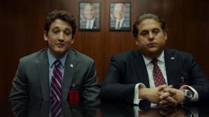 In 2005, while the Bush-Cheney junta’s fiasco in Iraq was reaping bodies and profits, 23-year-old David Packouz (Miles Teller) was eking by as a massage therapist and trying to sell bed sheets to nursing homes. Then brash (to put it mildly) 19-year-old buddy Efraim Diveroli (Jonah Hill) turns up, smirking over his shoestring company that gets the drop on government contract bids for weaponry. In short order, after some bong hits, they team up: their under-the-radar, beneath-morality gambles rake in millions. Swagger and success eventually separate the dudes from the Big Boys. ‘Cut-throat business’ can be more than figurative.