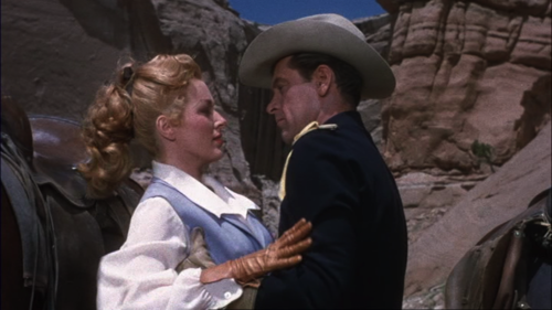 Frank Fenton’s script, which does boast some amusing dialog, emerged from a story by Australian actor and western buff Michael Pate, who was very busy that year, among other things playing a Apache warrior in Hondo. Cameraman Robert L. Surtees got color mileage out of the location shooting in numerous New Mexico locations (including “Rattlesnake”, which ya gotta like), and in California’s Death Valley Natl. Monument.