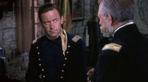 Arizona Territory, 1863. A tough Union officer (Holden) makes the mistake of letting a seductive Rebel spy (Eleanor Parker) keep him off guard enough to let his Confederate prisoners escape (led by John Forsythe). The ensuing pursuit runs into a trap laid by the Apaches, so Yanks & Rebs have to work together. You can bet an empty canteen that some supporting cast members won’t make it. Sturges’ handling of the action scenes shows some flair. *