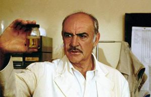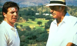 In terms of box-office results for a Connery picture, this offbeat, ignored, often pilloried satire ranks dead last, a shame. Several Sean fizzles deserved their fiscal fate—Meteor, The Avengers, Wrong Is Right, Shalako—-but some of his more interesting films and impressive work as an actor also went Double-O-zip when audiences skipped the likes of The Hill, The Molly Maguires, The Red Tent, The Name Of The Rose, Five Days One Summer and The Offence. While the droll send-up of A Good Man In Africa isn’t up to snuff with most of those, and Sean’s few quick scenes basically constitute a star-power cameo, his relaxed authority fits the character and will please his fans.