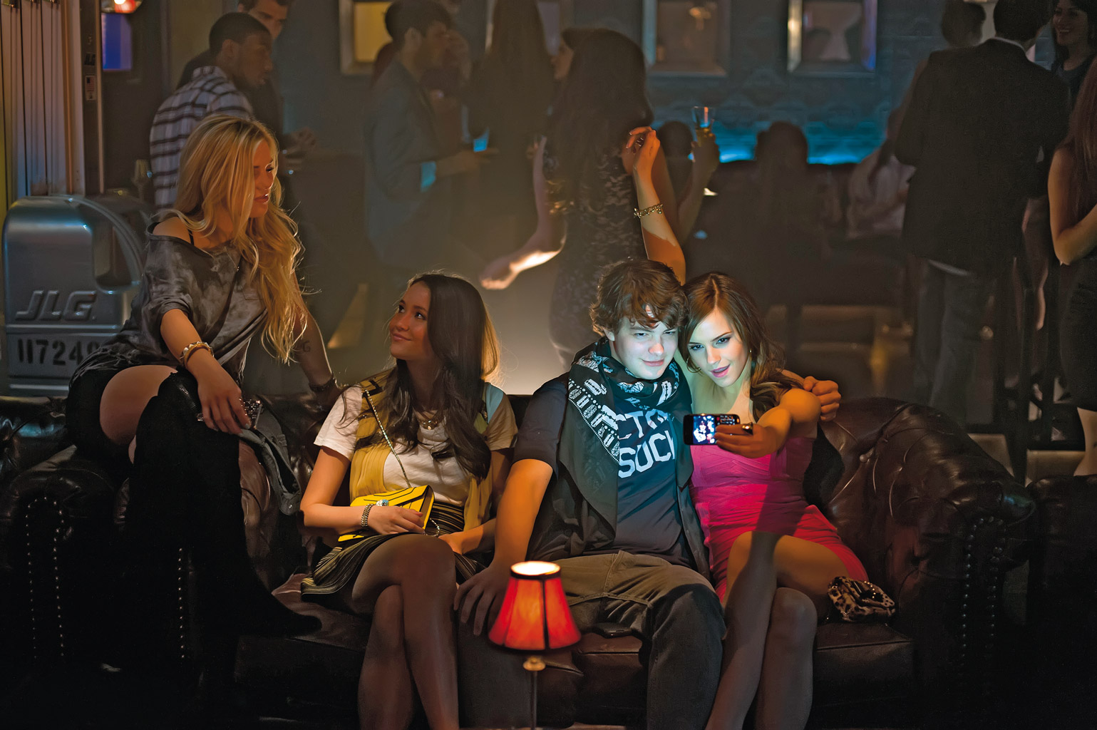The names were changed (to protect the incoherent), but the youth running wild are led by blithely amoral ‘Rebecca’ (Katie Chang, debut), who first entices proto-dupe ‘Marc’ (Israel Broussard), then budding astrophysicist ‘Nikki’ (Emma Watson), her future brain surgeon sister ‘Sam’ (Taissa Farmiga) and likely candidate as train conductor ‘Chloe’ (Claire Julien) into dropping in on the exalted likes of Paris Hilton, Orlando Bloom, Megan Fox and, lest we forget, Lindsay Lohan. They choose to visit their cultural idols when they’re not at home, better to waltz off—on killer Louboutins—with cash, jewelry, clothes and whatever sparkly trinket their appetite can gobble. Three million bucks worth. Oddly, they don’t steal any books….