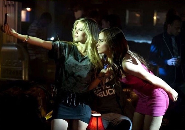On a somewhat higher plane, Claire Julien observed about shooting at Hilton’s residence: “It was a surreal experience. And it’s not because we’re into her as a celebrity. It’s just weird! Her house is an entirely different world. It isn’t Earth; it’s an entirely different planet. Seeing how she lives her life and how her home looks really brought us into the mindset of these characters because that was the house where the actual robberies took place. We had fun there, too. Most of the time when we weren’t filming, Taissa and I were outside playing soccer with the security guards.” ‘Girls just want to have fun….’