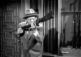 In the 79 minutes, besides the stars, going in twos into the “arc” of the plot are three more semi-pairs of characters from real-life blended with that of show biz. The muscle behind the bad girl’s scheme is provided by legendary boxer Max Baer and his towering brother Buddy: they get into a roughhouse scene where it looks like they might not be fully pulling all their punches, any one of which, if connected, would remove the normal human head. For supporting gags are two members of the changing combos that made up The Three Stooges, Shemp Howard and Joe Besser. Since Shemp was a gifted clown and good with dropping a joke line to effect, his brief moments as a nearsighted marksman get smiles. Besser, on the other hand, with that blackboard-meets-fingernails nancyboy act he cultivated, stepping in when Shemp died in 1955,, has gone down as the least funny of all the fill-in’s who succeeded the immortal Curly (just ask a Stoogist).