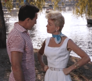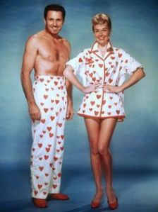 THE PAJAMA GAME started as a novel, which turned into a smash Broadway play that ran 1,063 performances, and finally arrived on screen in summer of 1957. Doris Day stars, George Abbott & Stanley Donen shared direction, Bob Fosse choreographed. As they’d done for the play, Abbott & Richard Bissell wrote the script; Bissell had authored “7½ Cents”, the book that kicked it all off. With a gross of $7,700,000 pegging 26th place at the box office, its zesty fun made it the best of ten musicals ’57 offered. A musical about a union !? *