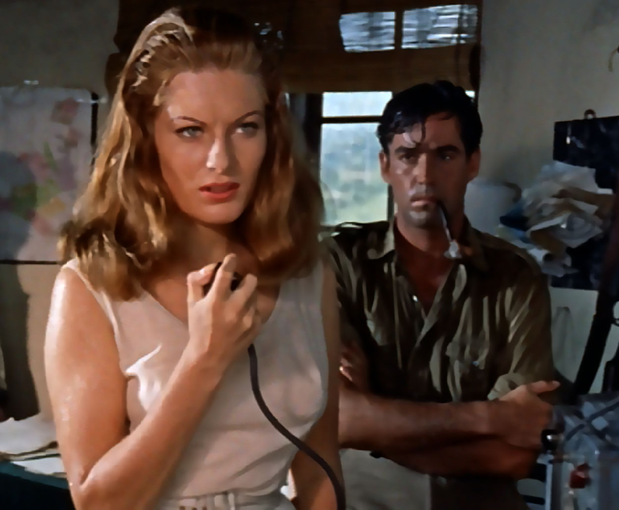 * Almost everyone got sick, felled from insect bites, dysentery, blood poisoning, rheumatism, heat exhaustion. The guy handling the “tame” cheetahs was badly mauled by one of them. The staged bush fire got out of control. McGoohan crashed a car and got a concussion. For some reason, electricians sabotaged the work of the first cameraman, who was sacked in favor of Harry Waxman (Swiss Family Robinson, The Wicker Man). Belinda Lee left the shoot at one point to fly to Rome to be with her married lover, Prince Felipe Orsini (she’s also married at the time). The Pope condemns the relationship. First Orsini, then Lee each try to commit suicide. They recovered, and she went back to finish the movie, but Rank (the film company) was not amused: they let her go. Three years and 11 films later, Belinda Lee died in 1961 in a car crash: she was 25.