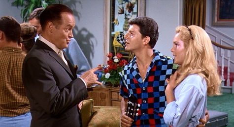 ‘Bob Holcomb’ (Hope), is an oil company exec (somehow fitting) who grabs a posting in Sweden in order to drag his daughter ‘Jojo’ (Tuesday Weld) away from marrying ‘zany’ free-spirit ‘Kenny Klinger’ (Frankie Avalon). But, hold your moral outrage over the Watusi and the Frug, Bob, ain’t Sweden where them fun-accented furriners practice that Commie “Free Love” stuff? Faster than you can say “Latest troop increase to Vietnam” Jojo falls for Nordic lothario ‘Erik Carlson’ (Jeremy Slate), who employs ‘culture’—art galleries, Byron and the opera—to log Jojo out of the American virgin wilderness into the sex sauna of Scandinavia. Widower (thank God for script surprises) Bob goes toupee-over-smirk for ‘Karen Granstedt’ (Dina Merrill), a divorced interior designer (see if you can open that friggin’ futon without breaking your wrist). When Bob sees Erik’s game, he summons all-American Kenny to fly over and break a guitar on Erik’s blond noggin.