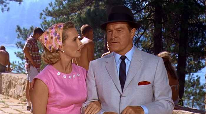 With Rosemarie Frankland (Miss World 1961, Hope’s mistress for two decades—gee, Bing, how’d she land the part?), Walter Sande, Roy Roberts, Frank Wilcox, John Qualen, Roger Torrey, Peter Leeds, Beverly Powers/Hills. 97 minutes that likely helped bring on LSD and semi-sanity to part of the population beginning to see stars past Hope.