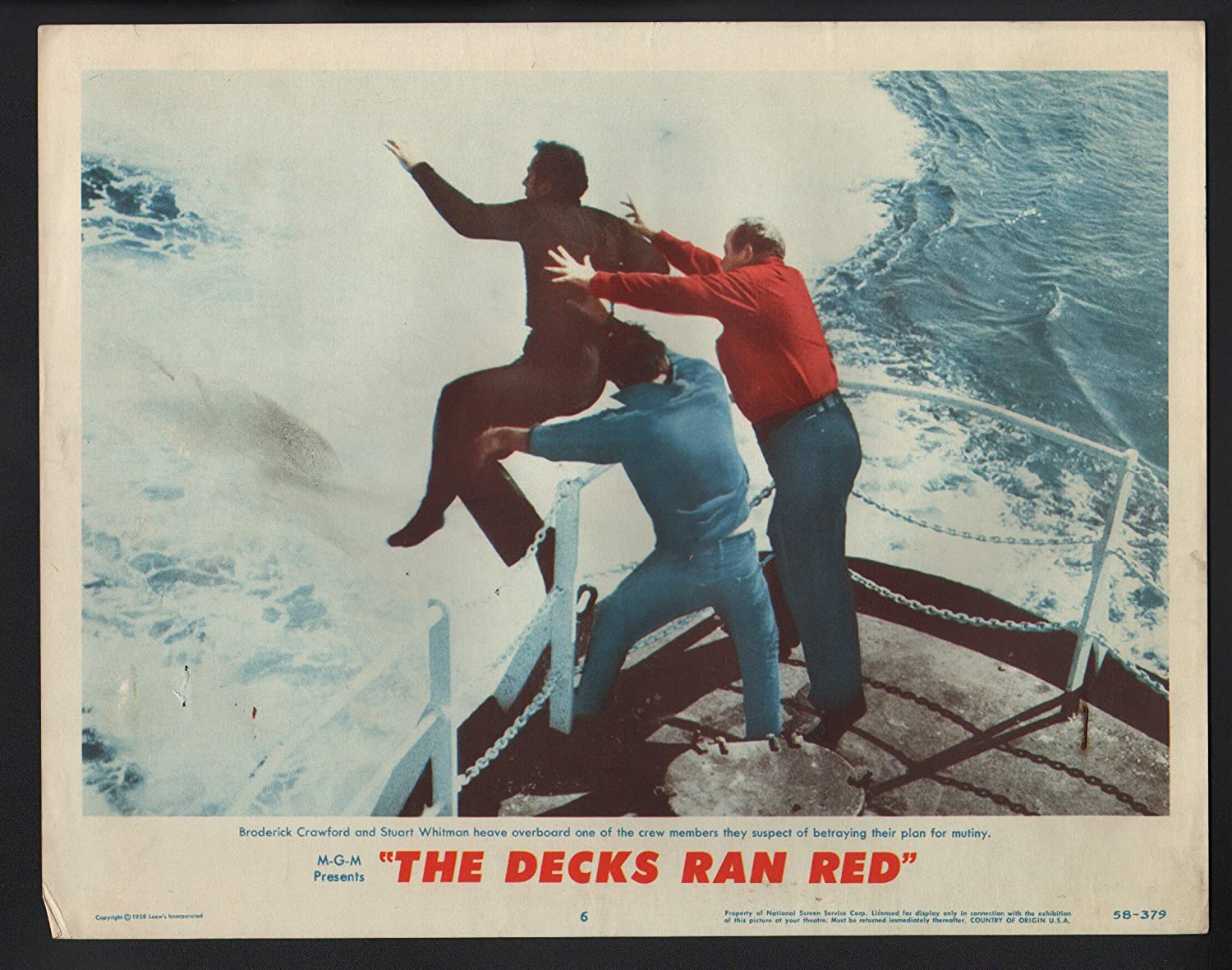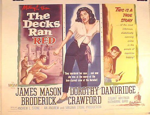 No kidding, as Rummill not only has insubordination to deal with, he’s forced to take aboard the new cook’s knockout of a wife (Dorothy Dandridge), her sultry presence further raising the temp in an already simmering stew. Asking her to tamp down her charms is one thing, but the real fret is soon revealed when surly louts ‘Scott’ (Broderick Crawford) and ‘Martin’ (Stuart Whitman) unleash their plot to take control of the ship. They’ll kill everyone who resists, then sit out the waiting period to claim salvage rights (Scott’s been digging into maritime law). Things get brutal.