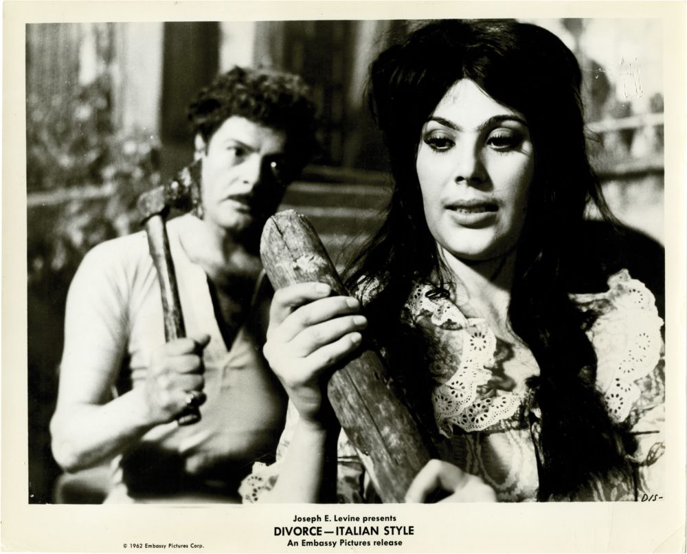 Wicked dry send-up of a basically barbaric law and medieval attitudes in an insular, male-dominated culture has a great cast and many amusing scenes, beginning with a classic entrance for Mastroianni—sunglasses, cigarette holder and deceptively blasé attitude, even when exiting a toilet—and culminating with a perfect final shot of flirting feet. Mastroianni’s deadpan performance is marvelous.